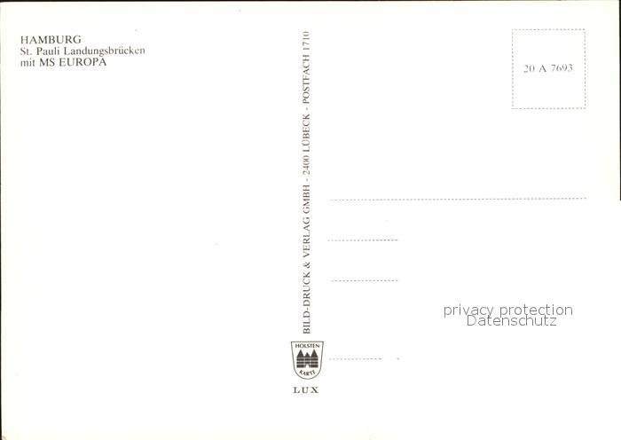 Faehre Ferry Bac Traghetto– MS Europa Hamburg St. Pauli Landungsbruecken postalisch nicht gelaufen Erhaltung siehe scans