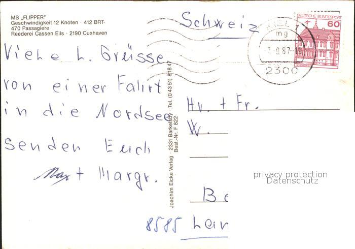 alte Postkarte Faehre Ferry Bac Traghetto– MS Flipper postalisch gelaufen Erhaltung siehe scans