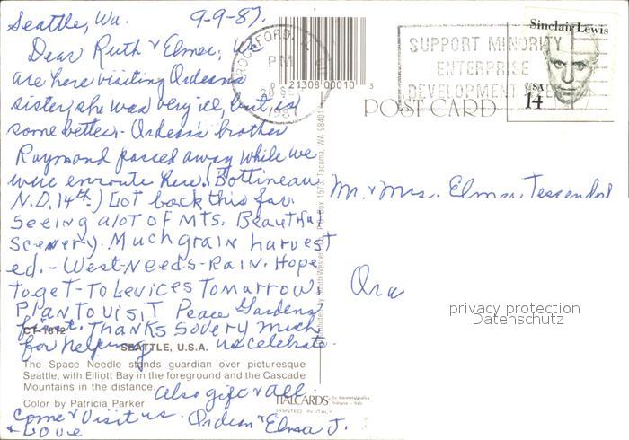 alte Postkarte Faehre Ferry Bac Traghetto– Seattle Space Needle Elliot Bay Cascade Mountains postalisch gelaufen