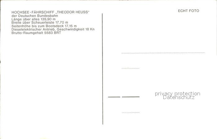 Faehre Ferry Bac Traghetto– Theodor Heuss postalisch nicht gelaufen Erhaltung siehe scans