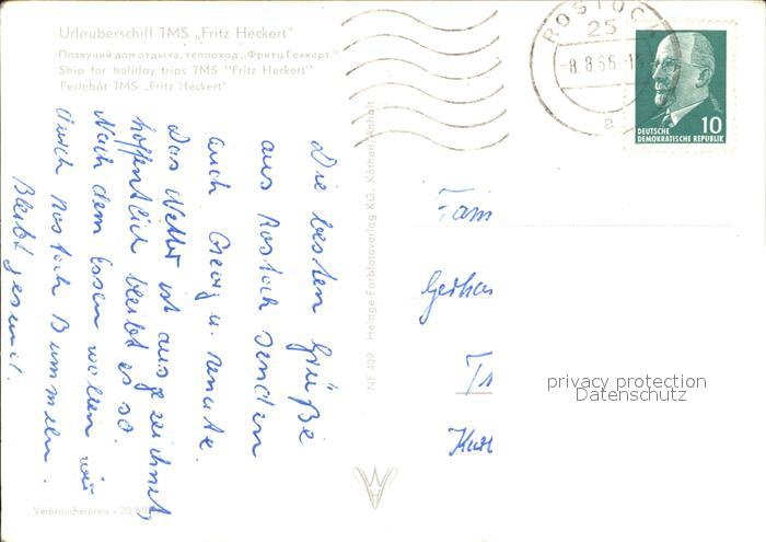 alte Postkarte Faehre Ferry Bac Traghetto– TMS Fritz Heckert postalisch gelaufen Erhaltung siehe scans