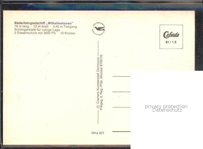 Faehre Ferry Bac Traghetto– Wilhelmshaven postalisch nicht gelaufen Erhaltung siehe scans