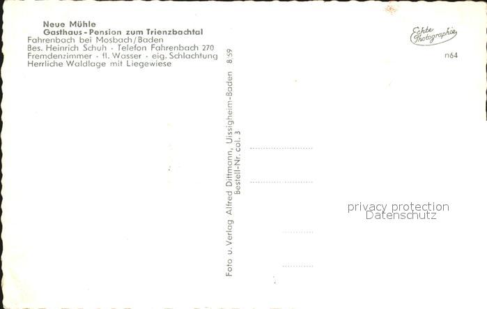 72392872 Fahrenbach Baden Neue Muehle Gasthaus Pension zum Trienzbachtal postalisch nicht gelaufen Erhaltung siehe scans KatCode: 11110008225024