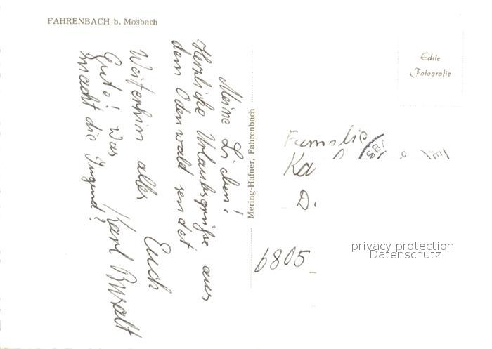 73070687 alte Postkarte Fahrenbach Odenwald Schule Kriegerdenkmal Teilansicht postalisch gelaufen Erhaltung siehe scans [FriedD77] KatCode: 11110006431007