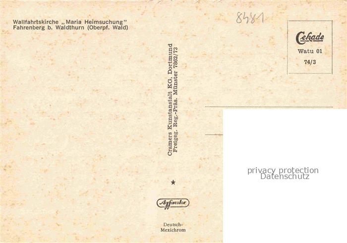 74049364 Fahrenberg Oberpfalz Wallfahrtskirche Maria Heimsuchung postalisch nicht gelaufen Fliegeraufnahme Erhaltung siehe scans [FriedD77] KatCode: 11110009374165
