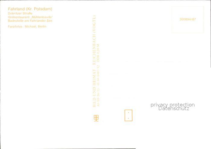 72547324 Fahrland Doebritzer Str Grillrestaurant Muehlenbaude Badestelle Fahrlander See postalisch nicht gelaufen Erhaltung siehe scans [WerneD78 kv017box] KatCode: 11110012054000