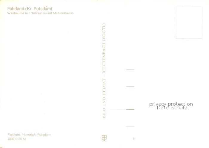 73071501 Fahrland Windmuehle Grillrestaurant Muehlenbaude postalisch nicht gelaufen Erhaltung siehe scans [NatalD47] KatCode: 11110012054000