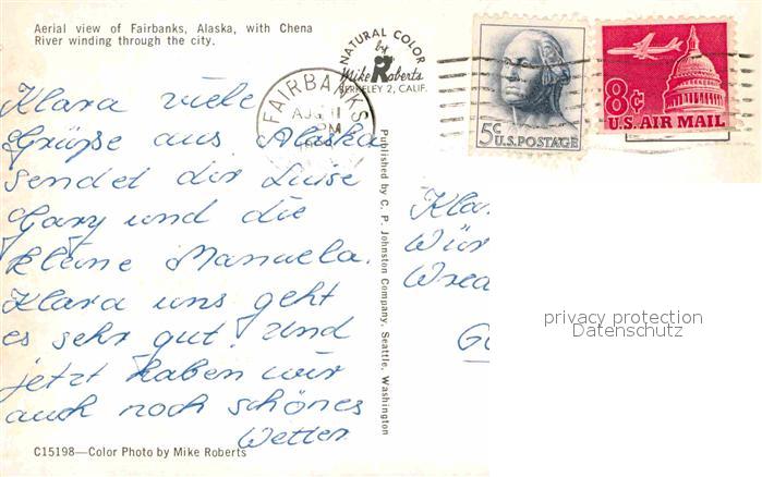 72810835 old postcard Fairbanks Alaska Fliegeraufnahme mit Chena River postalisch gelaufen Erhaltung siehe scans [WerneD78] KatCode: 14140020000000