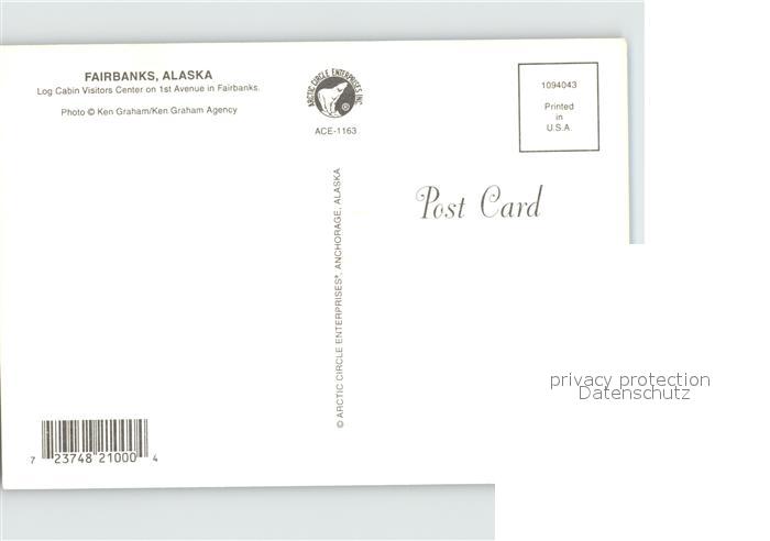 72432023 Fairbanks Alaska Long Cabin Visitors Center postalisch nicht gelaufen Erhaltung siehe scans KatCode: 14140020000000