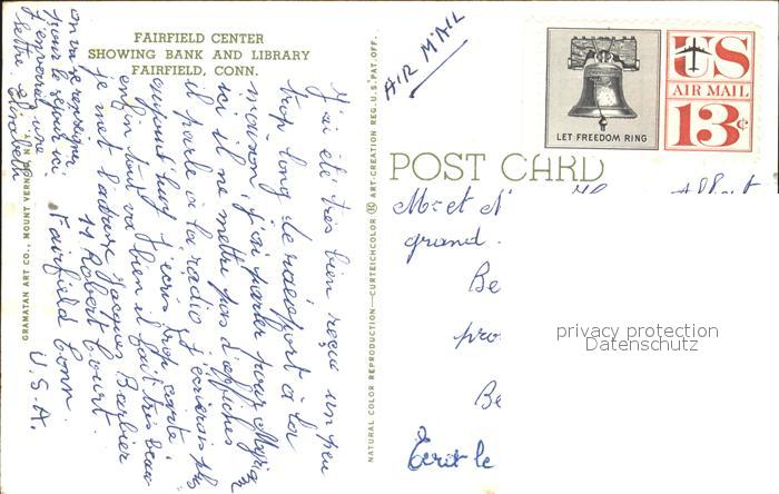 72167489 Fairfield Connecticut Fairfield Center showing Bank and Library postalisch nicht gelaufen Erhaltung siehe scans KatCode: 14140070000000