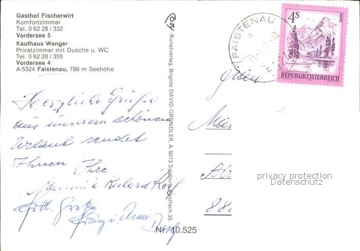 72485334 alte Postkarte Faistenau Salzburg Gasthof Fischerwirt Kaufhaus Pension Wenger Seepanorama postalisch gelaufen Erhaltung siehe scans KatCode: 11390323050311