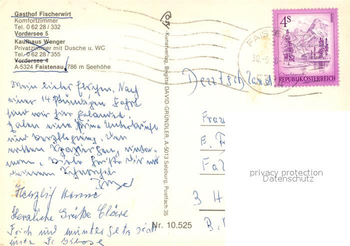 73167350 alte Postkarte Faistenau Salzburg Vordersee postalisch gelaufen Erhaltung siehe scans [LiesaD40] KatCode: 11390323050311