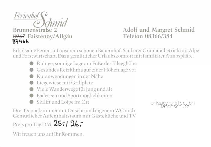 72775070 Faistenoy Ferienhof Schmid postalisch nicht gelaufen Werbekarte (keine Postkarte) Erhaltung siehe scans [NatalD47] KatCode: 11110009780128