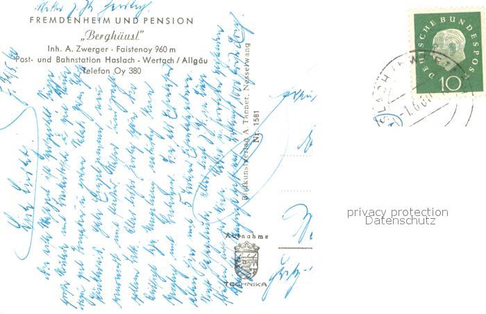 73644207 alte Postkarte Faistenoy Fremdenheim Pension Berghaeusl postalisch gelaufen Erhaltung siehe scans [FriedD77] KatCode: 11110009780128