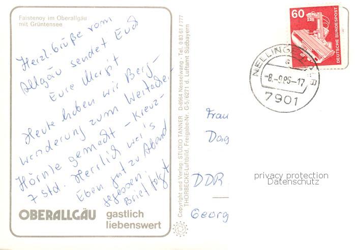 73786979 alte Postkarte Faistenoy mit Gruentensee Alpenpanorama postalisch gelaufen Fliegeraufnahme Erhaltung siehe scans [FriedD77] KatCode: 11110009780128