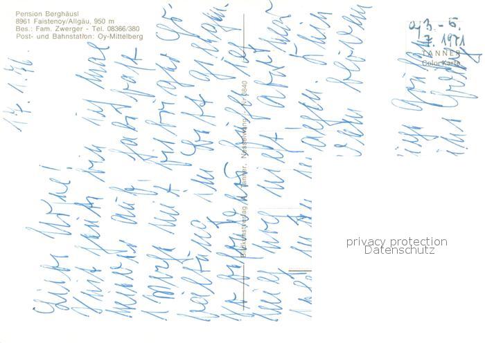 73650826 Faistenoy Pension Berghaeusl postalisch nicht gelaufen Erhaltung siehe scans [WerneD78] KatCode: 11110009780128