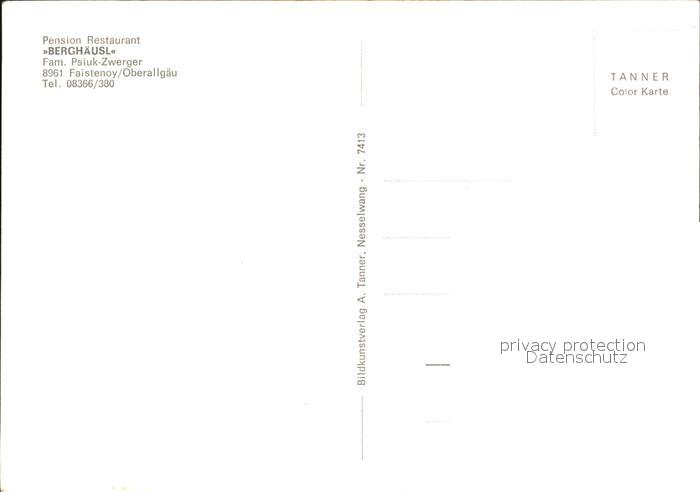 72495979 Faistenoy Pension Restaurant Berghaeusl postalisch nicht gelaufen Erhaltung siehe scans KatCode: 11110009780128