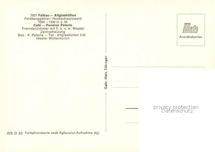 73041153 Falkau Cafe Pension Peterle postalisch nicht gelaufen Erhaltung siehe scans [WerneD78] KatCode: 11110008315037