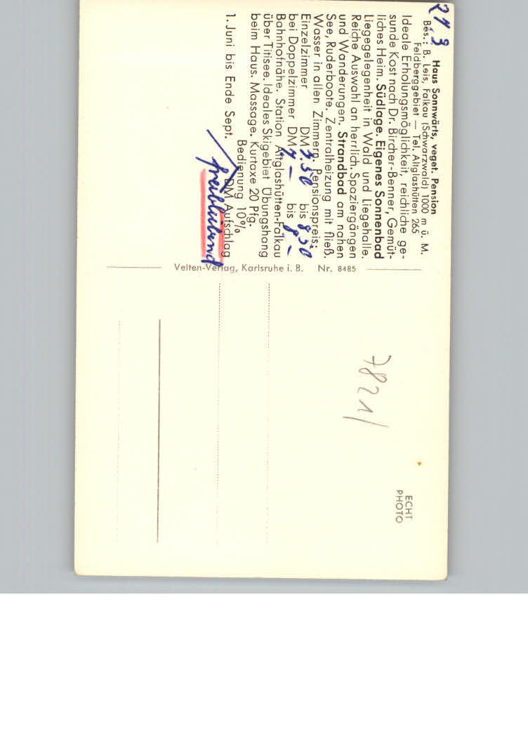 31152913 Falkau Pension Haus Sonnwaerts postalisch nicht gelaufen KatCode: 11110008315037