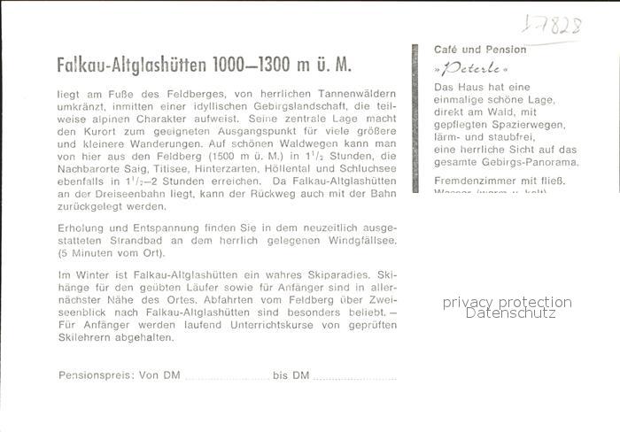 41811778 Falkau Pension Peterle postalisch nicht gelaufen Erhaltung siehe scans KatCode: 11110008315037