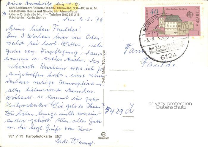 72064940 alte Postkarte Falken-Gesaess Gaestehaus Horus Luftkurort postalisch gelaufen Erhaltung siehe scans KatCode: 11110006437002