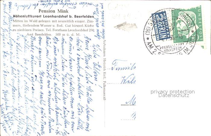 31884788 alte Postkarte Falken-Gesaess Leonhardshof Pension Mink Sommerberg postalisch gelaufen KatCode: 11110006437002
