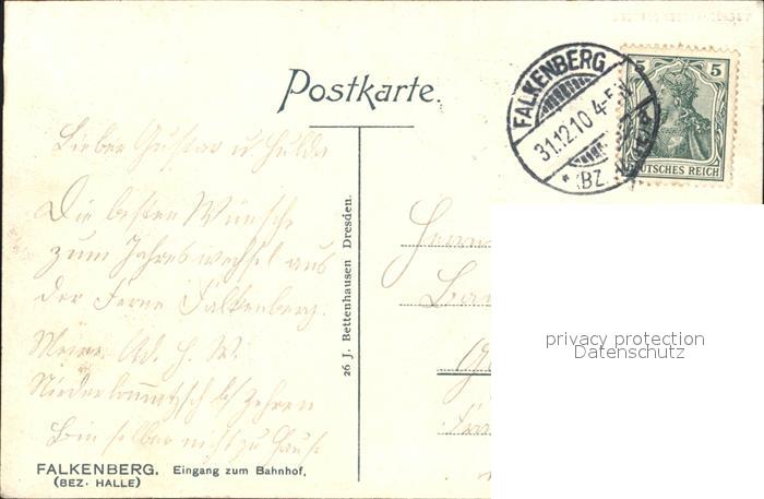 32185692 alte Postkarte Falkenberg Elster Eingang zum Bahnhof postalisch gelaufen Erhaltung siehe scans KatCode: 11110012062128