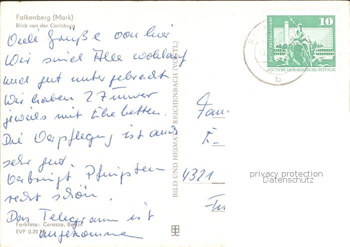 72071750 alte Postkarte Falkenberg Mark Blick von der Carlsburg postalisch gelaufen Erhaltung siehe scans KatCode: 11110012064125