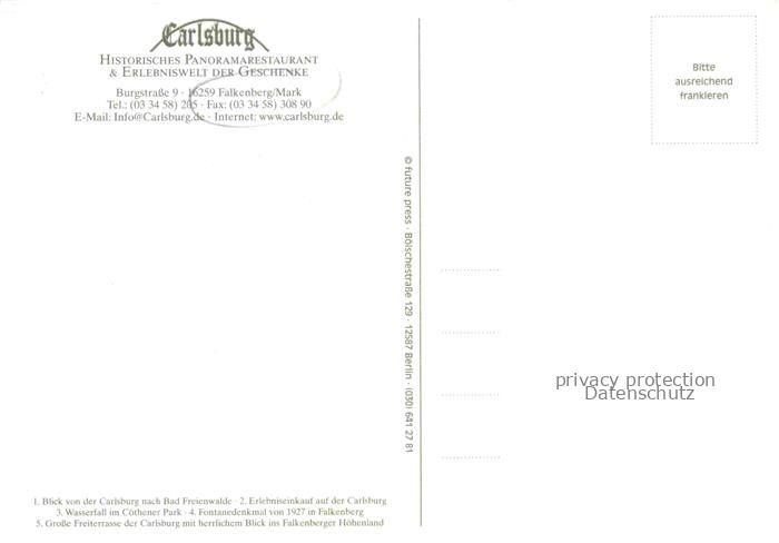 74156623 Falkenberg Mark Brandenburg Carlsburg Panoramarestaurant Fontane-Denkmal Freiterrasse Wasserfall Cottener-Park Eulen Hahn postalisch nicht gelaufen Erhaltung siehe scans [Karloger] KatCode: 11110012064125
