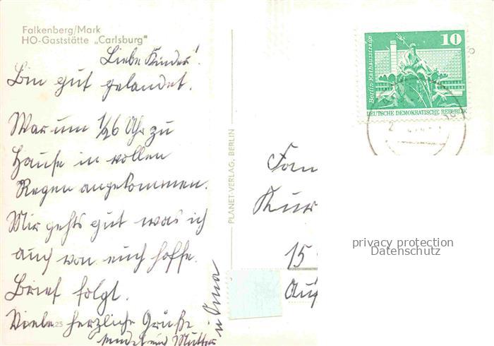 74156621 alte Postkarte Falkenberg Mark Brandenburg HO-Gaststaette-Carlsburg Terrasse Aussicht Flachland Gaststaette Sommergaeste postalisch gelaufen Erhaltung siehe scans [Karloger] KatCode: 11110012064125