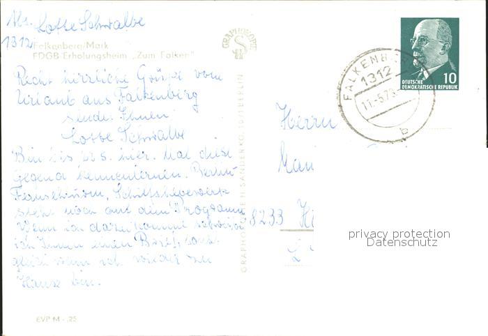 72030305 alte Postkarte Falkenberg Mark Erholungsheim Zum Falken postalisch gelaufen Erhaltung siehe scans KatCode: 11110012064125