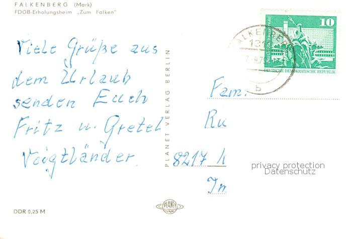 73868629 alte Postkarte Falkenberg Mark FDGB Erholungsheim Zum Falken postalisch gelaufen Erhaltung siehe scans [WerneD78] KatCode: 11110012064125