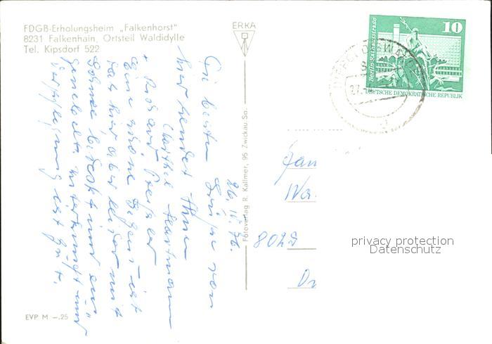 72386108 alte Postkarte Falkenhain Altenberg Erzgebirge FDGB-Erholungsheim Falkenhorst postalisch gelaufen Erhaltung siehe scans KatCode: 11110014290010