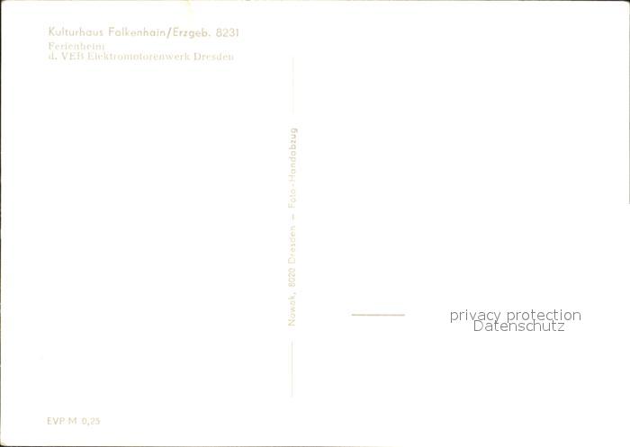 72000808 Falkenhain Altenberg Erzgebirge Kulturhaus Ferienheim VEB Elektromotorenwerk Dresden postalisch nicht gelaufen Erhaltung siehe scans KatCode: 11110014290010