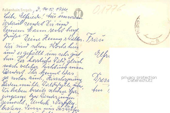 72642848 alte Postkarte Falkenhain Altenberg Erzgebirge Teilansicht postalisch gelaufen Erhaltung siehe scans [AndreD76] KatCode: 11110014290010