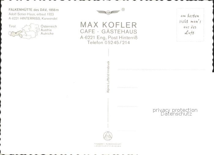 72056132 Falkenhuette Grubenkar Dreizinkenspitze Laliderer Wand Laliderer Spitze postalisch nicht gelaufen Erhaltung siehe scans KatCode: 11390335070936