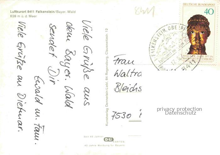74049170 alte Postkarte Falkenstein Bayerischer Wald Regen Panorama Luftkurort Burg Freibad Waldpartie Felsen postalisch gelaufen Erhaltung siehe scans [FriedD77] KatCode: 11110009276115