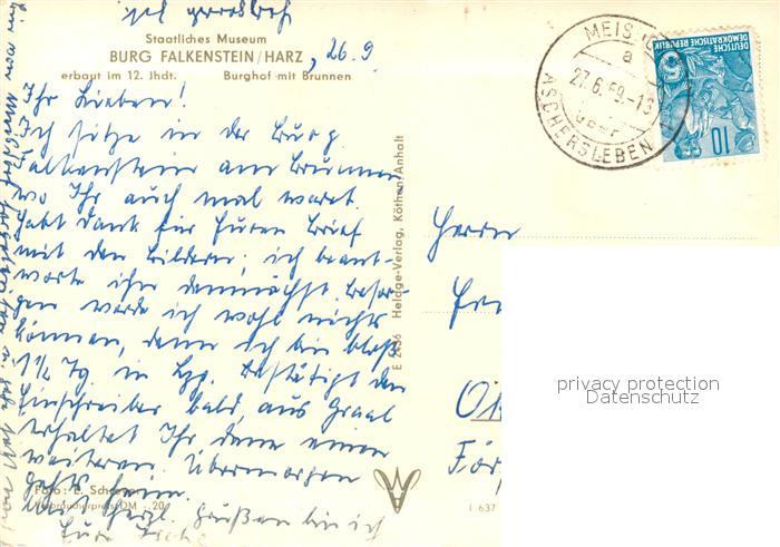 73141930 alte Postkarte Falkenstein Harz Burg Falkenstein Burghof mit Brunnen postalisch gelaufen Erhaltung siehe scans [FriedD77] KatCode: 11110015085110