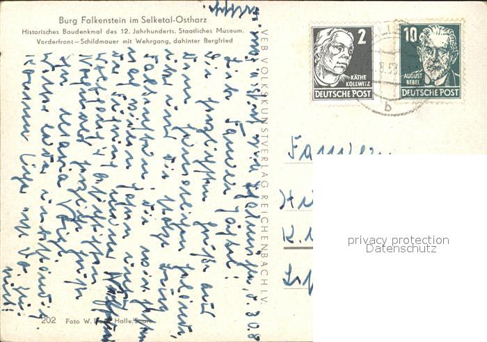 alte Postkarte Falkenstein Harz Burg im Selketal Historisches Baudenkmal 12. Jhdt. Museum postalisch gelaufen Erhaltung siehe scans