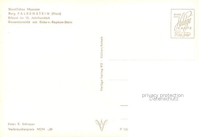 73100524 Falkenstein Harz Burg Staatliches Museum postalisch nicht gelaufen Erhaltung siehe scans [KathaD81] KatCode: 11110015085110