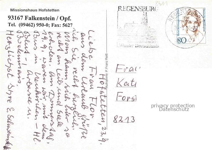 74049150 alte Postkarte Falkenstein Oberpfalz Missionshaus Hofstetten Gerstenfeld postalisch gelaufen Erhaltung siehe scans [FriedD77] KatCode: 11110009372125