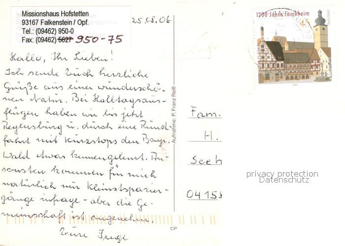 73032182 alte Postkarte Falkenstein Oberpfalz Missionshaus Hofstetten postalisch gelaufen Erhaltung siehe scans [PaolaD17] KatCode: 11110009372125