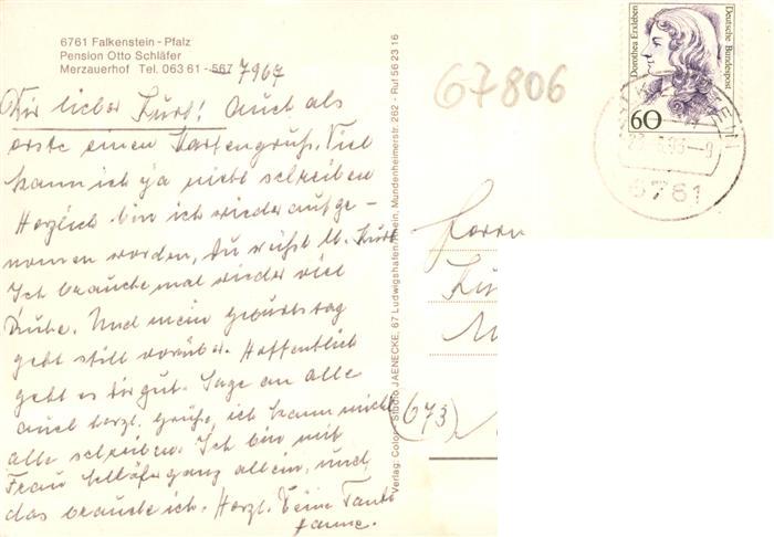 73894793 alte Postkarte Falkenstein Pfalz Pension Otto Schlaefer postalisch gelaufen Erhaltung siehe scans [FriedD77] KatCode: 11110007333020