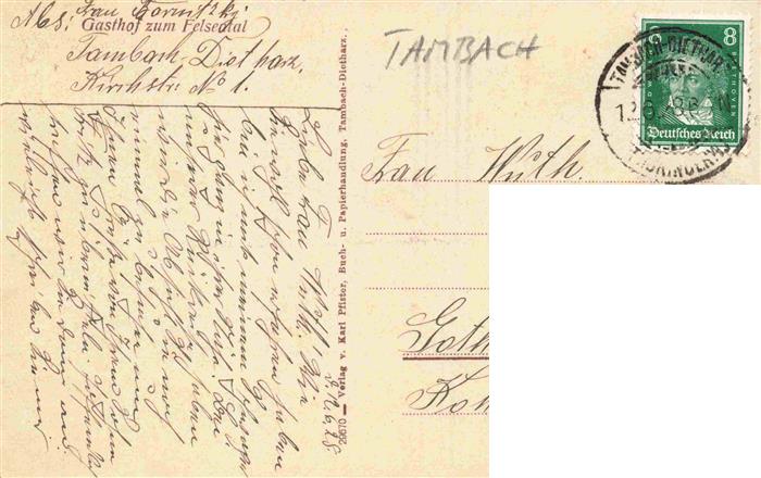 73974676 alte Postkarte Falkenstein Tambach-Dietharz Thueringen Panorama Dietharzer Grund Gasthof zum Felsental postalisch gelaufen Erhaltung siehe scans [FriedD77] KatCode: 11110016067065