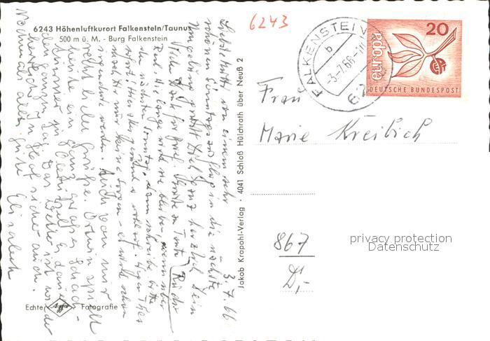 72097921 alte Postkarte Falkenstein Taunus Burg Falkenstein Gedicht O Wanderer hoere postalisch gelaufen Erhaltung siehe scans KatCode: 11110006434005