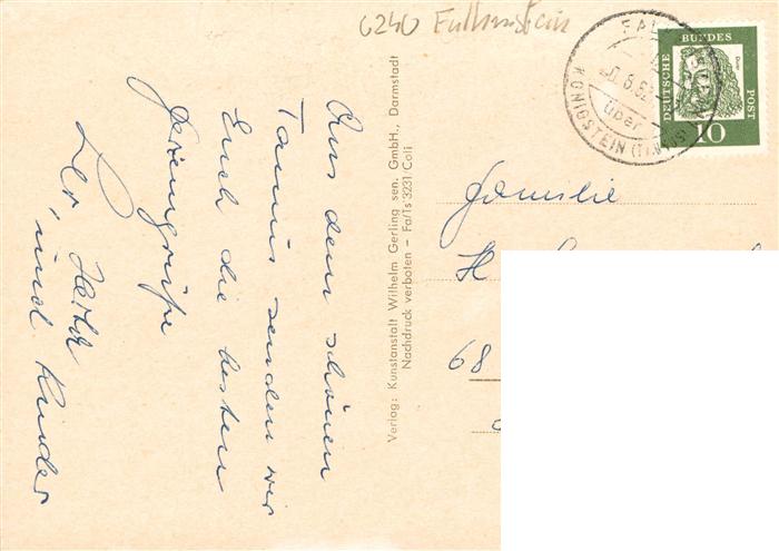 73936131 alte Postkarte Falkenstein Taunus Burg Falkenstein Panorama Ortspartie postalisch gelaufen Erhaltung siehe scans [WerneD78] KatCode: 11110006434005