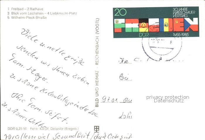 72386219 alte Postkarte Falkenstein Vogtland Freibad Rathaus Wilhelm-Pieck-Strasse postalisch gelaufen Erhaltung siehe scans KatCode: 11110014178170
