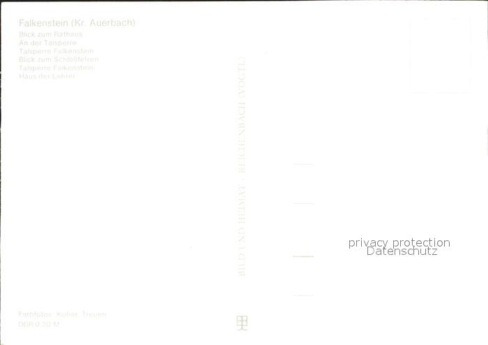 72374276 Falkenstein Vogtland Rathaus Talsperre Rastplatz Uferpromenade Schlossfelsen Haus der Lehrer postalisch nicht gelaufen Erhaltung siehe scans KatCode: 11110014178170