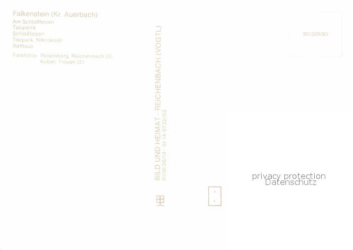 72913632 Falkenstein Vogtland Schlossfelsen Talsperre Tierpark Krokodil Rathaus postalisch nicht gelaufen Erhaltung siehe scans [LiesaD40] KatCode: 11110014178170