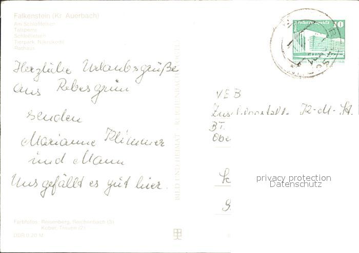 72382399 alte Postkarte Falkenstein Vogtland Schlossteich Talsperre Schlossfelsen Nilkrokodil Rathaus postalisch gelaufen Erhaltung siehe scans KatCode: 11110014178170